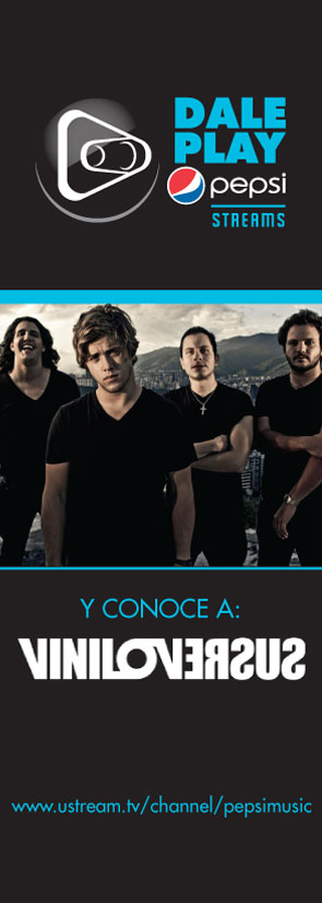 Siguen las grandes noticias para la movida musical venezolana: el próximo miércoles 2 de noviembre se estrenan totalmente en vivo y por el canal Ustream oficial de la marca Refréscalo Todo, los Pepsi Music Streams con la participación de la banda Viniloversus.