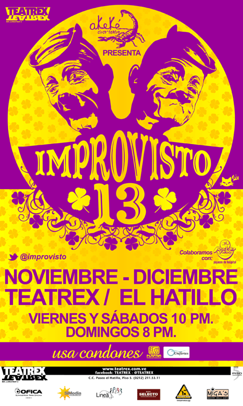 IMPROVISTO, «Donde nada esta previsto»: Un espectáculo lleno de historias sorprendentes, únicas e irrepetibles. Ninguna función será igual a la anterior, ni los improvisadores, ni el presentador, ni los títulos, ni las sorpresas… todo cambia, nada está previsto.