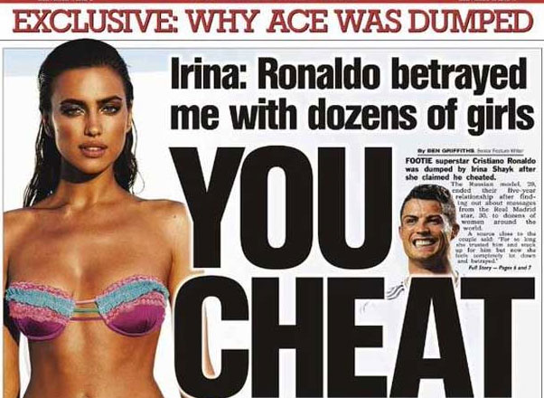 El tabloide The Sun publica este domingo en boca de Irina Shayk que »Cristiano me traicionó con docenas de mujeres».