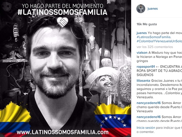 El cantante colombiano también publicó en su cuenta de Instagram una imagen en la aparece él con la bandera de Colombia y Venezuela, cuyo mensaje dice: “Yo hago parte del movimiento #LatinosSomosFamilia. #ColombiaYVenezuelaUnSoloPueblo”.
