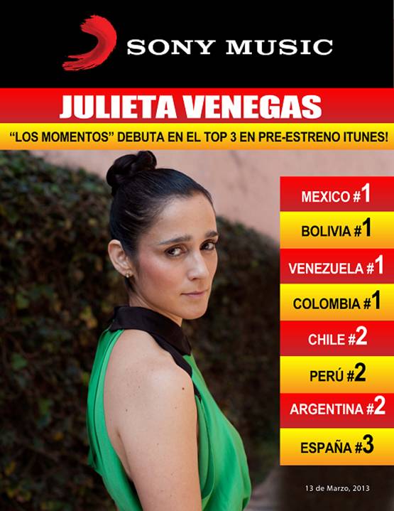 Una vez más, Julieta Venegas, ahora con su álbum “LOS MOMENTOS”, se convierte en la primera artista latina cuyo álbum podrá ser escuchado previamente a su lanzamiento en la tienda digital iTunes a nivel Pan regional, sumando esta acción a las que ya ha encabezado previamente.