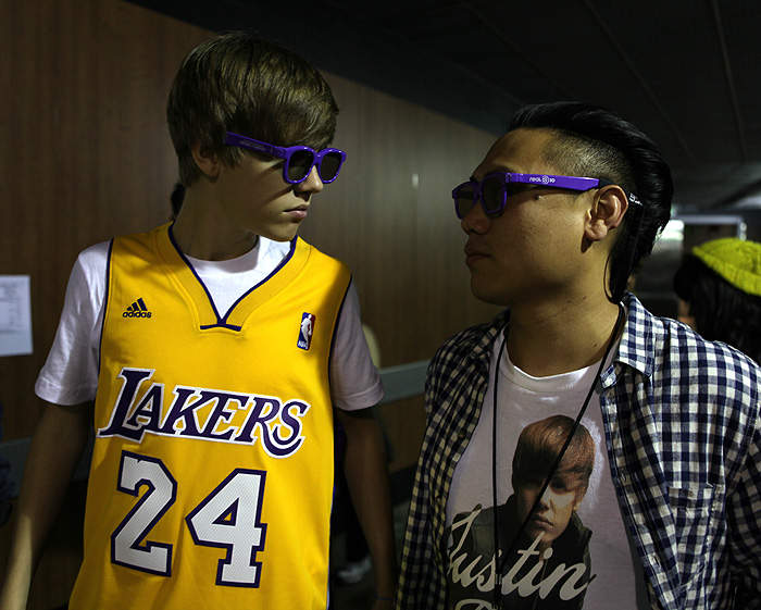 en la noche del miércoles (2 de febrero). Celebrado en el Regal E-Walk 13, el fenómeno de 16 años de edad, estaba vestido con un conjunto completamente negro con un moño morado haciendo juego con un par de lentes mientras saludaba a los asistentes como Russell «Russy» Simmons, Daniel «Diggy» Simmons, Lynsey Mickolas, L.A. Reid y el director Jon M. Chu.