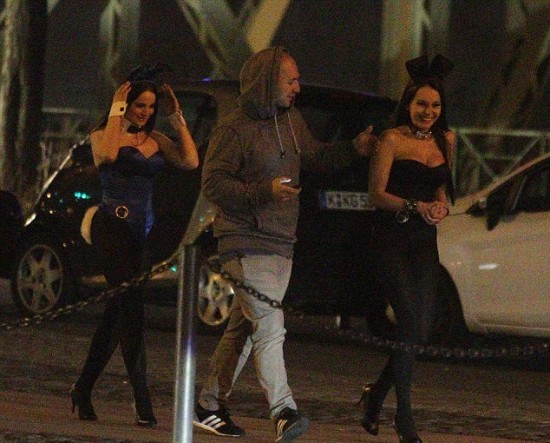 Los paparazzis captaron a dos bellas señoritas dirigiéndose al bus del canadiense vestidas de conejitas , junto a uno de sus guardaespaldas. Según reportes, las jóvenes estuvieron alrededor de una hora en el vehículo.