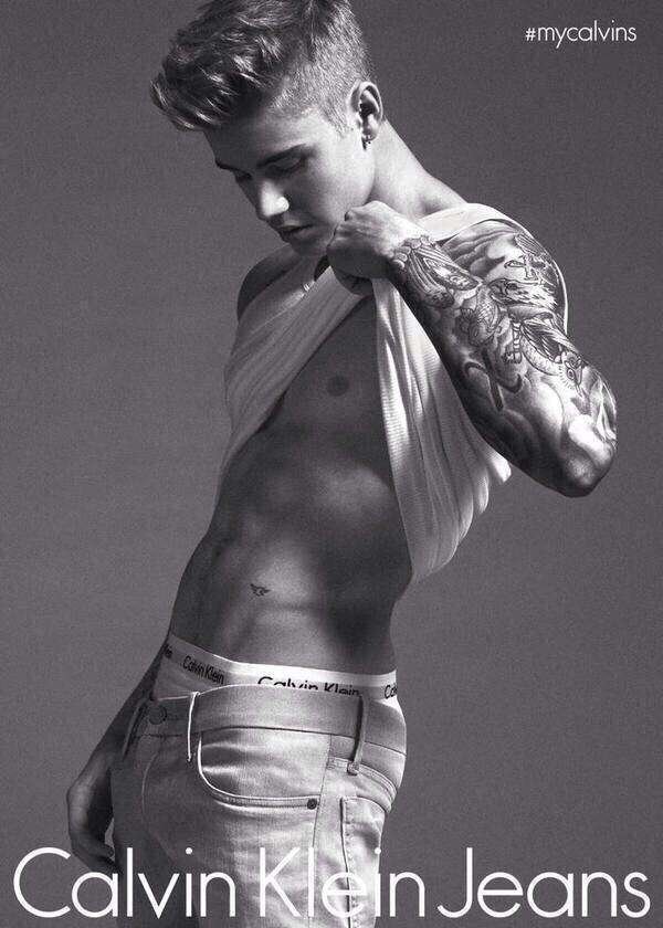 Mediante esta red, tanto la marca como el chico canadiense y la modelo holandesa, dieron a conocer algunas de las fotos de la campaña para ropa interior. En ellas, todas en blanco y negro –como ha sido el sello de esta línea- se ve a un Justin Bieber con un cuerpo atlético que deja lucir sus tatuajes, solo en bóxer o en jeans y abrazado de la guapa modelo.