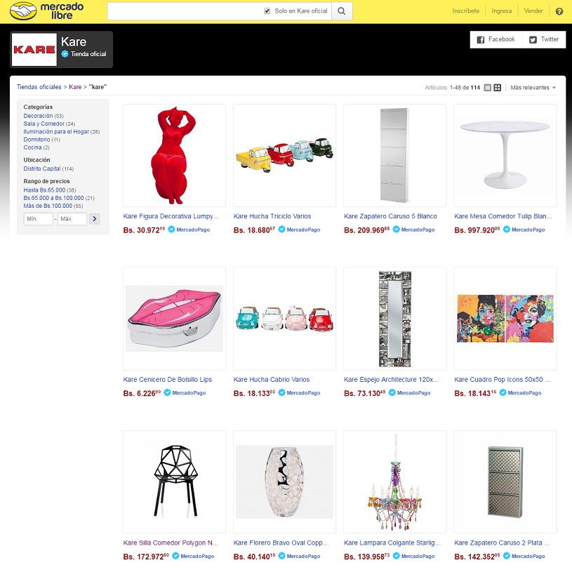 Siguiendo esta tendencia digital, Kare, franquicia alemana de muebles, accesorios y lámparas ha decidido vender, a través de la conocida plataforma de MercadoLibre, una línea seleccionada de productos, perfecta para decorar tus espacios. ¡Ahora podrás comprar sus exclusivos y espectaculares diseños desde donde desees!