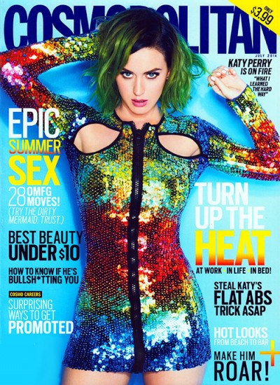 La guapa Katy Perry es la nueva chica de portada de la revista Cosmopolitan Estados Unidos. La cantante lució atuendo con lentejuelas y mucho brillo.