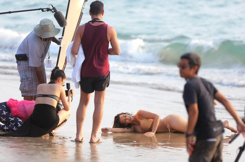Kim Kardashian lució su radiante figura en una sesión fotográfica en la playa de Tailandia, luego del nacimiento de su hija North West.