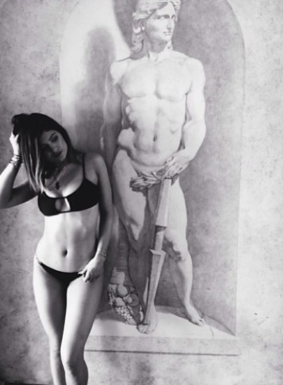 ‘Sí, robé el bikini de Kylie, ella no lo recuperará’, escribió la prometida de Kanye West quien minutos antes compartió la imagen vemos luciendo su cuerpo de frente de un espejo.