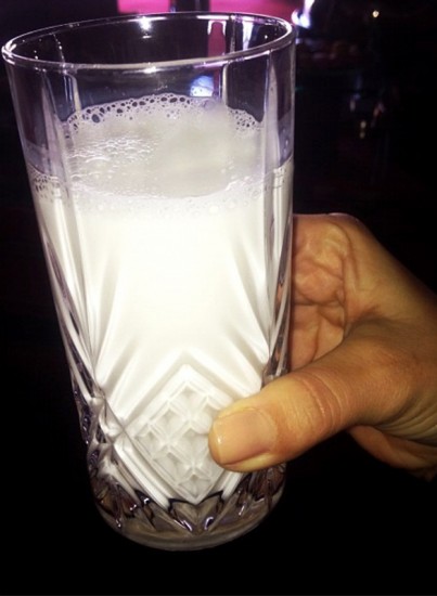Parece que Kim Kardashian quedó fascinada por su estadía en Baréin, pues hasta se atrevió a tomar un gran vaso lleno de leche de camella, una bebida típica del lugar.