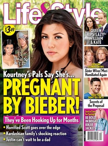 «Estamos ante un escándalo de grandes proporciones, aún no hecho oficial ni tampoco negado. El amigo de Kourtney Kardashian dice que si amiga está encantada con Justin Bieber. Habla maravillas de él, afirma que el sexo es alucinante y que la hace sentir más joven».