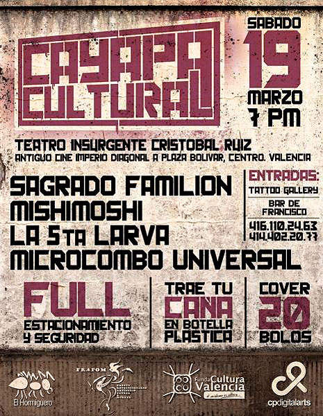 La banda Venezolana »La 5ta larva» se estará presentándo en Valencia el próximo sábado, en »La cayapa cultural».