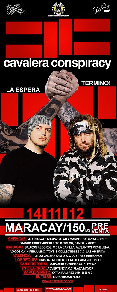 Luego de 18 años vuelven a Venezuela los hermanos Cavalera iconos del metal latino y fundadores y ex integrantes de la banda Sepultura, en esta ocasión pisan nuestro país con 2 grandes Marc Rizzo y Tony Campos quienes conforman el line up de Cavalera Conspirancy la banda más brutal d metal latino a nivel mundial.