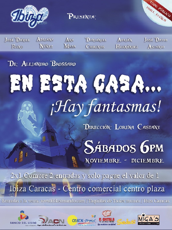 En esta casa… ¡Hay fantasmas! Es una comedia de suspenso original del argentino Alejandro Brossard; bajo la dirección de Lorena Castany, y la Producción de Creaciones Teatrales Heurisko- Venezuela.