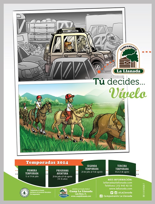 Para conocer más sobre la opción preventa de las Temporadas 2014 de La Llanada, disponibles hasta este sábado 31 de mayo, pueden visitar www.lallanada.com o las redes sociales Fb: CampamentoLaLlanada y Tw: @lallanada. También a través del e-mail: [email protected] y los tel: 212.945.9836 – 212.945.9255.
