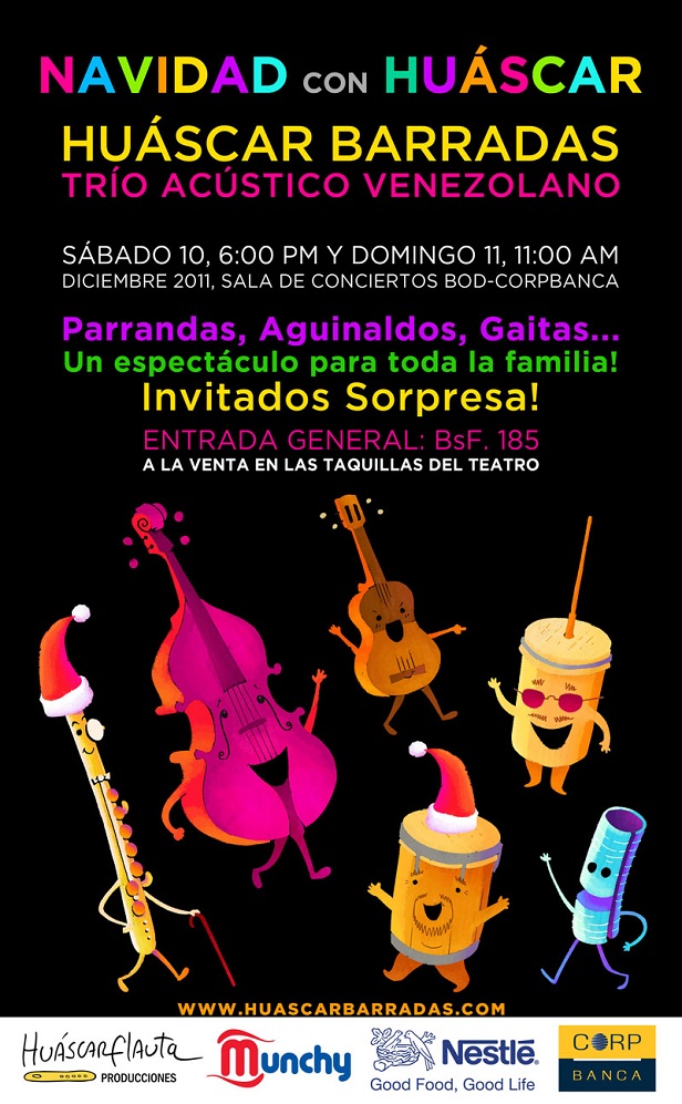 Protime Comunicaciones, noviembre 2011.- Decir Navidad en Venezuela es hablar de las gaitas y recordar clásicos de la época que son infaltables en las reuniones familiares y celebraciones navideñas. Es esperar lo nuevo de Huáscar Barradas y su gira de conciertos “Navidad con Huáscar” que desde hace siete años presenta con total éxito para toda la familia.