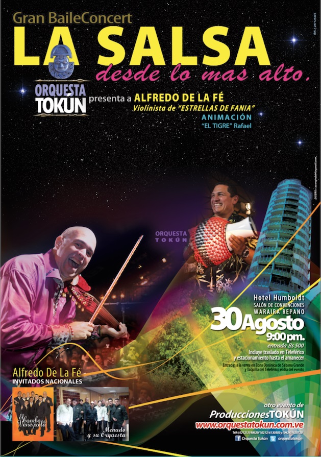 Es el evento más esperado para los salsómanos. Directamente desde Nueva York, Alfredo De La Fe, violinista de las Estrellas de Fania, estará con la Orquesta Tokun. En el show habrá un emotivo homenaje al Gran Combo de Puerto Rico con el Combo de Venezuela, también homenaje a los Hermanos Lebrón con Menudo y su Orquesta y como si fuera poco, estarán los reconocidos Djs Carlos Guevara y Norberto Black.