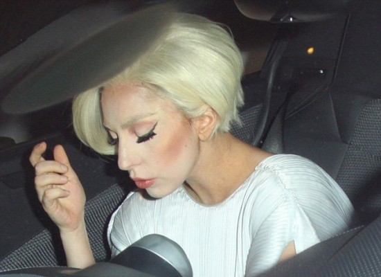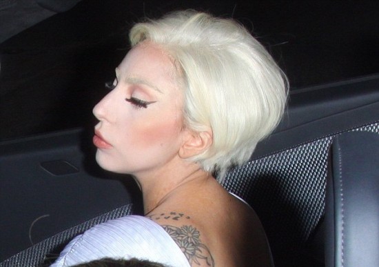 La mother monster tuvo un radical cambio de look, en el que consistió en cortarse el cabello y decolorárselo hasta quedar blanco. Camino al Chateau Marmont, Lady Gaga lució un traje blanco, base pálida y los ojos delineados de negro.
