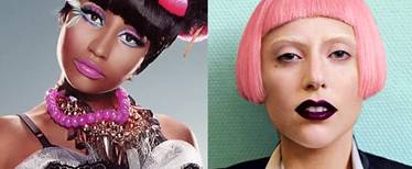 aparentemente inspirada en LADY GAGA por el pelo corto color rosa, o en NICKI MINAJ por las uñas negras, además de tener varios tatuajes en su cuerpo.