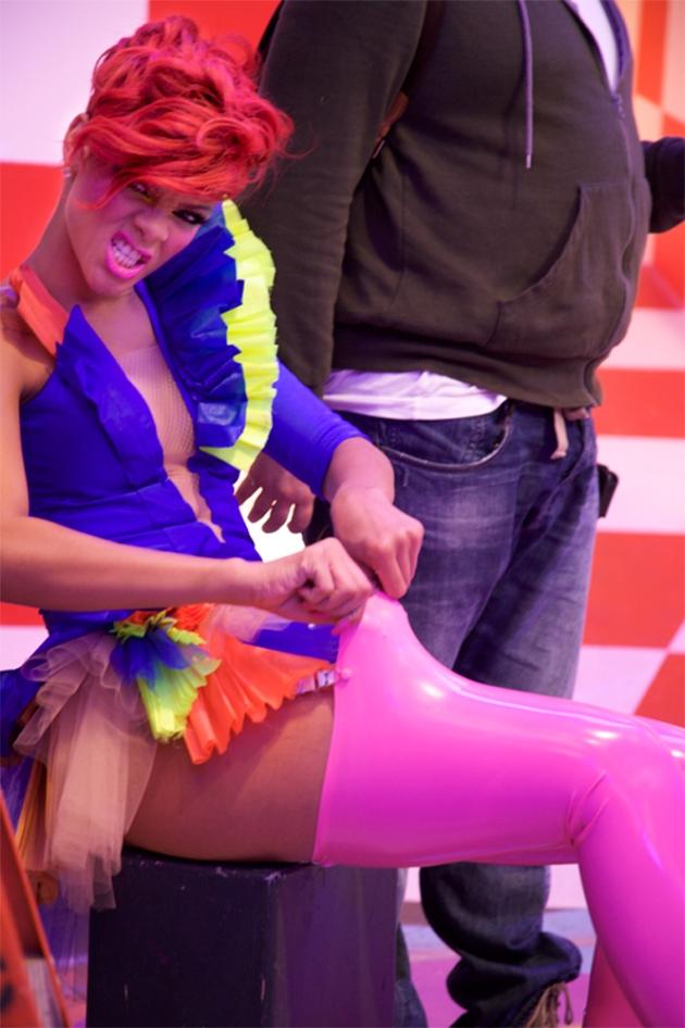 Eso sí, sin prescindir de su cara más sexy, la cantante también vuelve a lucir sus extravagantes modelitos -cada vez más coloridos-, cambio de look que parece estar explotando desde que tiñera su pelo de color rojo fuego con el fin de dar una nueva imagen a su próximo trabajo discográfico, Loud.
