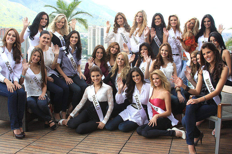 de la Gran Caracas: El pasado martes, desde muy temprano las 24 concursantes iniciaron la acostumbrada gira con una apretada agenda. En cada una de las redacciones, las misses respondieron a las interrogantes de los periodistas al tiempo de posar para los flashes de los fotógrafos y curiosos que se acercaban, al verlas.