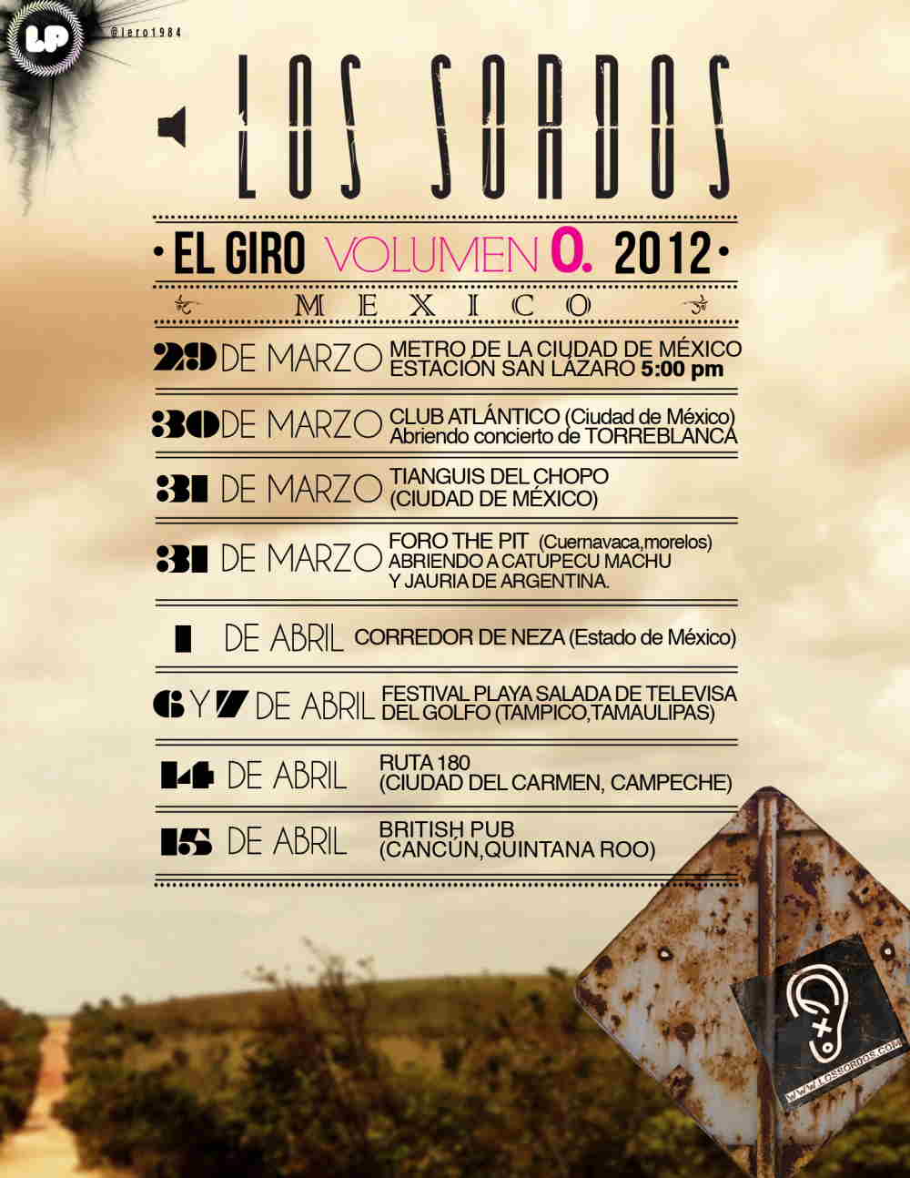 La banda de rock/pop venezolana, Los Sordos, regresa a México para continuar la promoción –ya iniciada en su primera visita el año pasado-de su más reciente álbum «Volumen 0». En esta oportunidad, poseen fechas confirmadas en importantes ciudades: