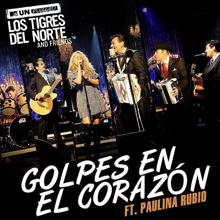 »GOLPES EN EL CORAZÓN», es la carta de presentación del tan esperado nuevo álbum de Los Tigres del Norte, “MTV UNPLUGGED: LOS TIGRES DEL NORTE AND FRIENDS”, el sencillo es un tema en el que se hacen acompañar por “la chica dorada”, Paulina Rubio, quien forma parte del elenco de grandes estrellas que acompañan a la agrupación en este extraordinario proyecto.