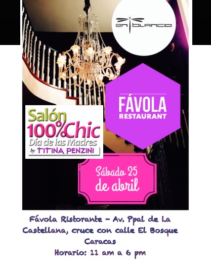 Por que nuestras madres se merecen todo el Salón 100% Chic Día de las Madres by Titina Penzini tendrá como protagonistas a los grandes exponentes de la moda nacional. Una oportunidad única para celebrar el día de las madres compartiendo en el “Favoloso” ambiente y gastronomía de Favola, así como de lo mejor de la moda y #talentovenezolano, además de poder disfrutar de las mejores mezclas de Titina Penzini.