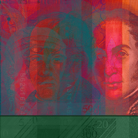 En sus “Narrativas Globales” trabaja con billetes de diferentes denominaciones y nacionalidades, para mostrar temas económicos, políticos y sociales globales mediante el uso de la impresión digital sobre láminas de plexiglás, canvas y otros materiales.