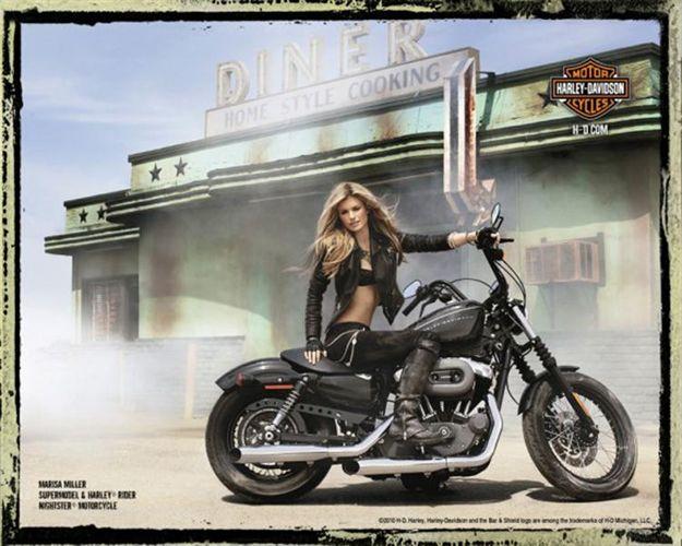 unos momentos su hábitat natural -las pasarelas- Marissa Miller vuelve a protagonizar unas tórridas fotos para la nueva campaña publicitaria de la legendaria motocileta.