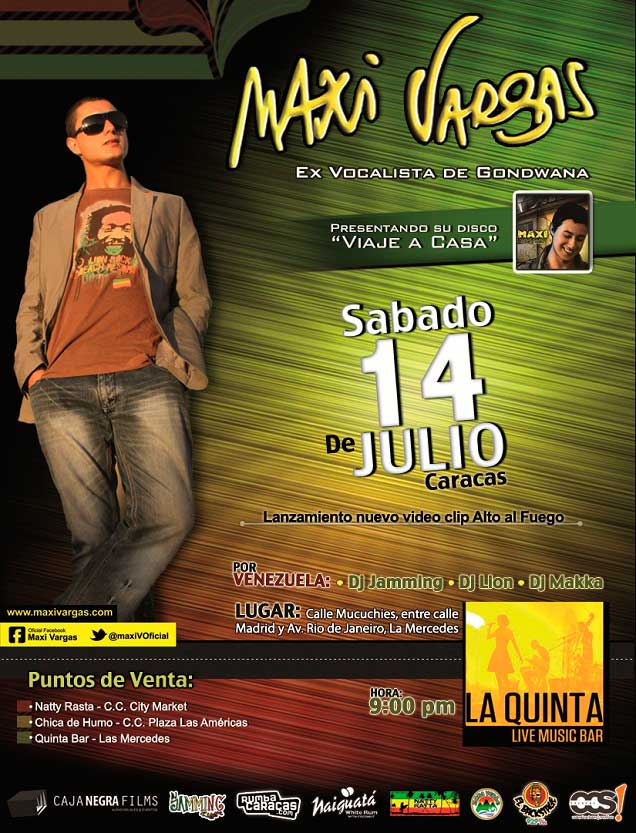 “Hola mi gente de Venezuela, nos encontraremos el 12 y 14 de julio, les llevo mi Viaje a casa y muchas ganas de tocar en su tierra, gracias por el apoyo y por recibirme”, dijo el cantante, quien en repetidas ocasiones ha expresado a través de su cuenta de twitter @ MaxiVoficial que tiene muchas ganas de pisar suelo venezolano. Además compartirá escenario con los Dj´s Jamming, Makka y Lion, quienes musicalizarán la noche.