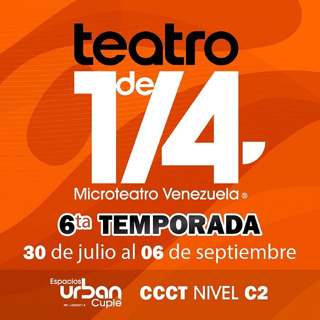 Desde este próximo 30 de julio y hasta el 06 de septiembre Caracas disfrutará nuevamente de TeatroDe1/4 Microteatro Venezuela, en los Espacios Urban Cuplé del CCCT.