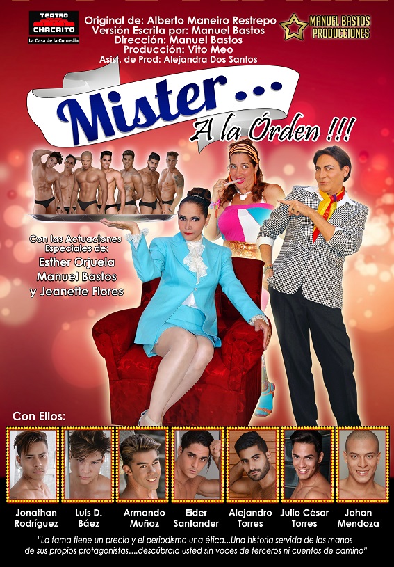 Todo está listo para el Gran estreno éste jueves 7 de abril de la pieza teatral “Míster…A la Orden!!! ” en las instalaciones del Teatro Chacaíto bien conocido como: “la Casa de la comedia” . Una historia original del periodista Alberto Maneiro Restrepo, escrita por Oswaldo Estrada y ahora con nueva versión por Manuel Bastos quien a su vez asume la Dirección de la puesta en escena y Vito Meo en la Producción General de ésta comedia donde el buen humor es el protagonista a la hora de decir verdades.