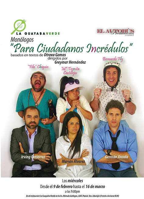 – mejor conocido como Otrova Gomas– en los miércoles de teatro del restaurant La Guayaba Verde. Dirigido por Greymar Hernández, producido por Alix Llovera y con las actuaciones de Marián Álvarez, Germán Anzola e Irving Gutiérrez.