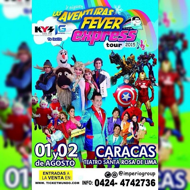La obra Infantil más exitosa que recorre Latinoamérica llega a Venezuela, para realizar una extensa gira por todo el país. Se trata de “Aventuras Fever Express”, de los mismos creadores del musical “Aventuras congeladas”. Ahora, traen para los consentidos de la casa esta espectacular y mágica obra musical Infantil.