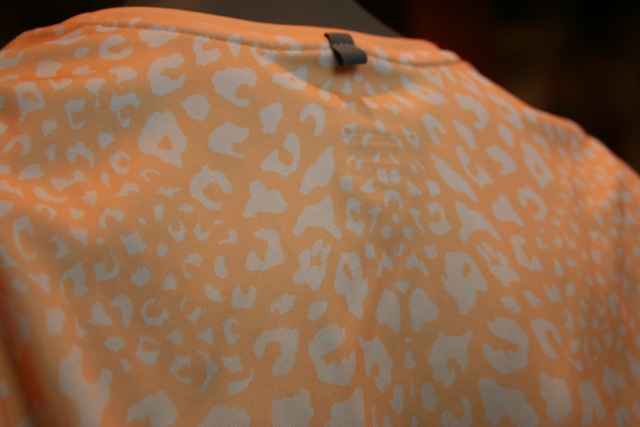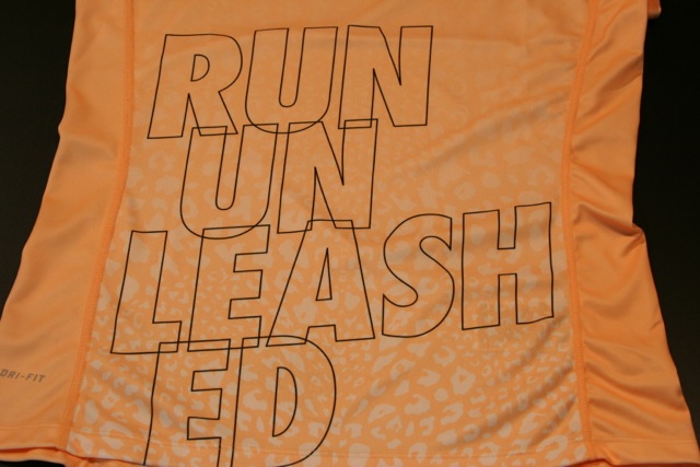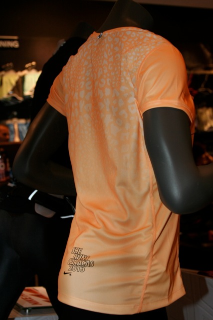En esta ocasión, la franela Dri Fit es de color melón con el eslogan “Corre sin límites” en letras grandes de borde negro y en la parte inferior izquierda se ubica el número de cada corredora. En su parte posterior contiene un sutil detalle en animal print, que simula la piel de un felino, como expresión de la parte más salvaje de la mujer al momento de competir.