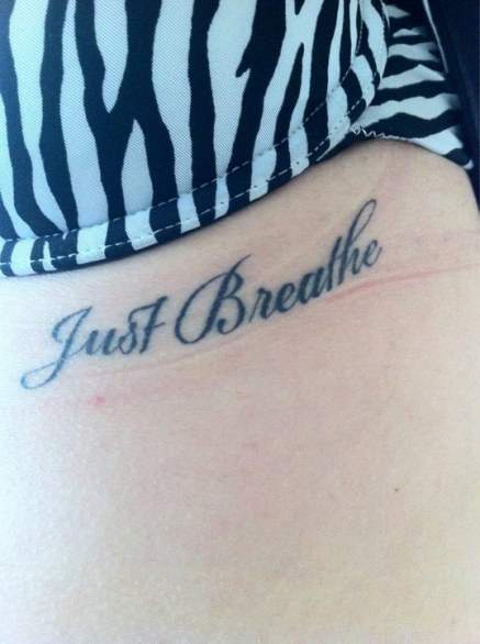 puede hacerse todos los que quiera sin preguntarle a papaito ni a mamaita. Uno de sus tattoos más sexies es el que tiene bajo el pecho, donde luce las palabras “Just Breathe”.