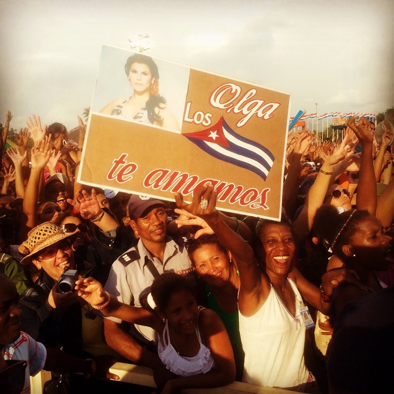 Miami 6 de diciembre 2015. La multipremiada artista puertorriqueña, Olga Tañón, sobre partituras está escribiendo su monumental actuación en la isla de Cuba. Histórica, avasallante, multitudinaria y sobre todo sentimental. Su aparición en la súper tarima en la Plaza de la Revolución Mayor General Antonio Maceo Grajales, en la provincia de Santiago de Cuba, se puede definir como fantástica y asombrosa, pero aún mayor la respuesta del pueblo cubano, que se desbordó en aplausos y aclamaciones, nunca antes vista en la isla, desde tiempos del “Concierto por la Paz”.