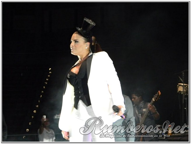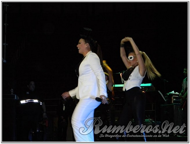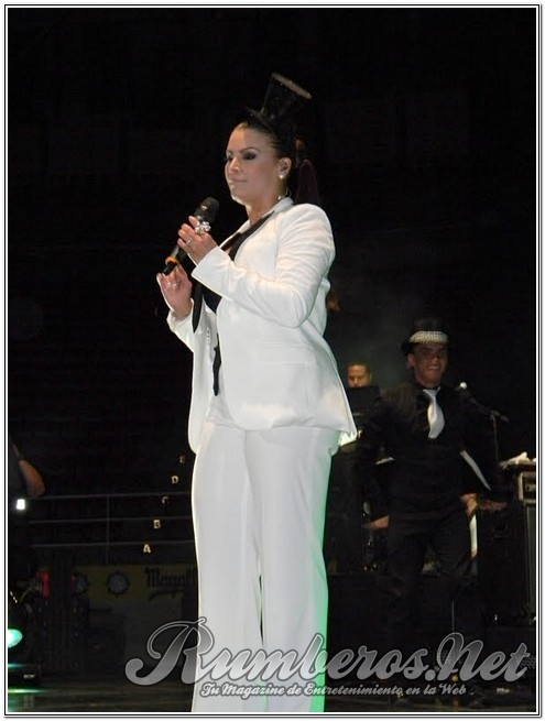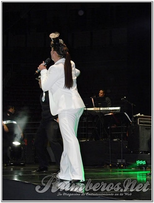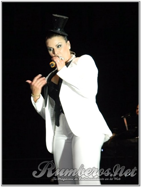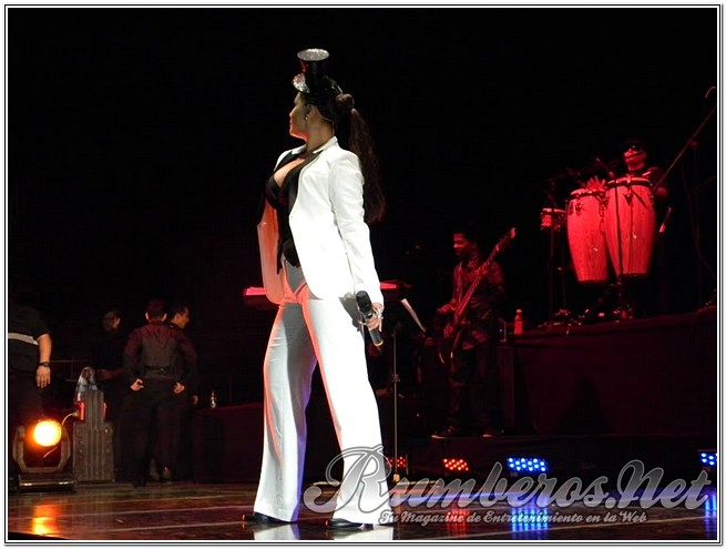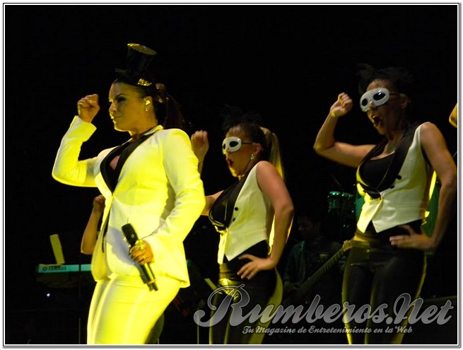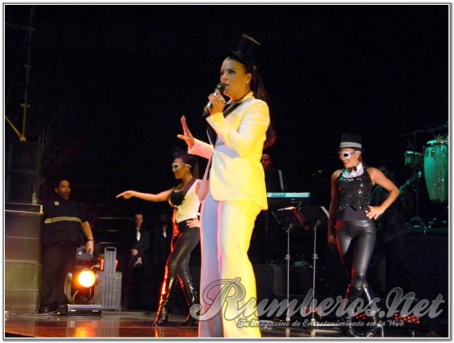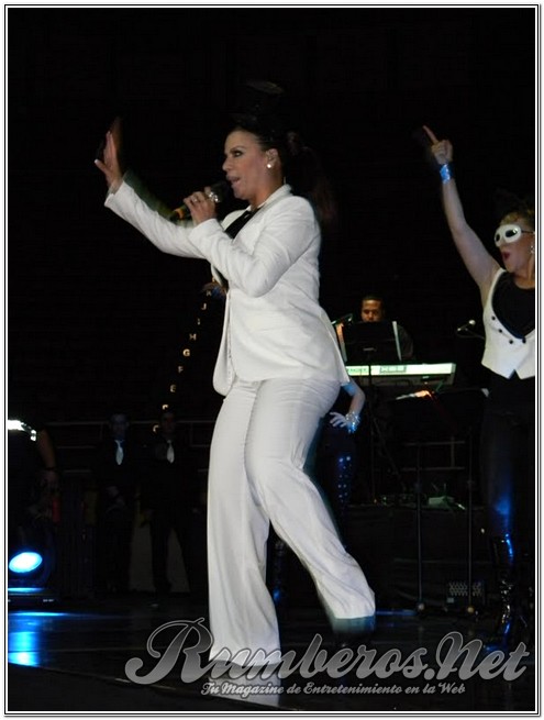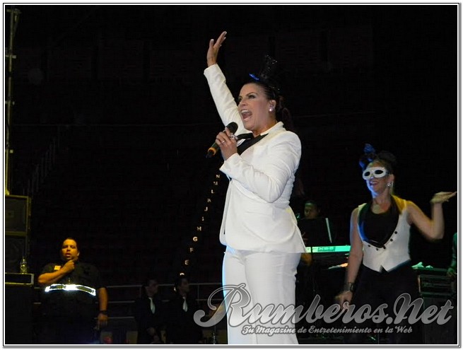 Pasada las 9 de la noche la boricua subió al escenario vestida de pantalón y blazer blanco con un pequeño antifaz interpretando “Bandolero”, seguida “Es Mentiroso”, “Vendrás Llorando” y “Tu te lo pierdes”. “Buenas noches Valencia, se ven muy bonitos sentados, pero en mi concierto van a estar de pie” expresó la merenguera. Seguidamente agradeció a los distintos medios de comunicación y a Venelatin para luego interpretar “Así es la Vida” y “Desde que llegaste a Mí”.