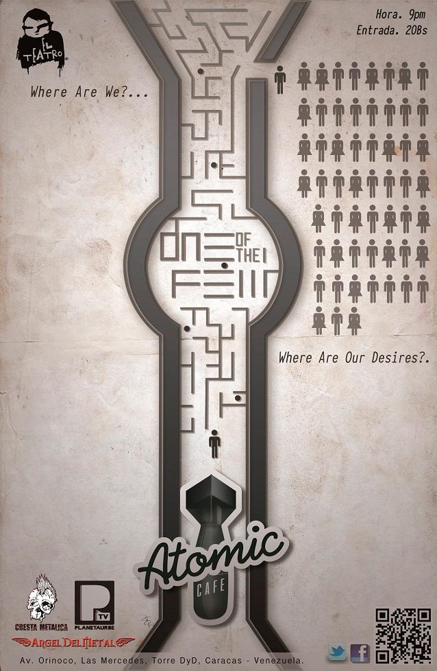Recuerden el próximo jueves 22 de noviembre a las 10:00 PM en Teatro Bar, ONE OF THE FEW, presenta la nueva función ATOMIC CAFE la primera opera rock industrial hecha en Venezuela. Cover Bs 20 por persona.