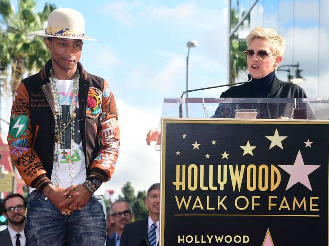 La conductora Ellen DeGeneres (amiga muy cercana del músico) se encargó de dar un discurso introductorio durante la ceremonia de entrega de la estrella, en el cual platicó y bromeó sobre la personalidad y pasión de Pharrell.