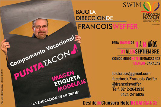 No hay mejor vestido que la educación y esta debe ser el traje de gala que exhiba cada individuo. Consiente de que nuestra sociedad atraviesa una crisis de valores, cortesía y buenos modales, el reconocido comentarista de moda, belleza e imagen Francois Weffer a diseñado el Plan Vocacional “PUNTA TACON 2014”, el cual persigue entre sus múltiples objetivos que las jovencitas de 11 a 16 años utilicen su tiempo exitosamente en este periodo vacacional para su mejoramiento integral.