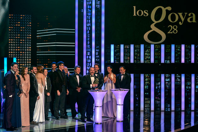 Ferrari y gran parte de su equipo recogieron emocionados el premio en la gala de los Goya celebrada en el Centro de Congresos Príncipe Felipe de Madrid.