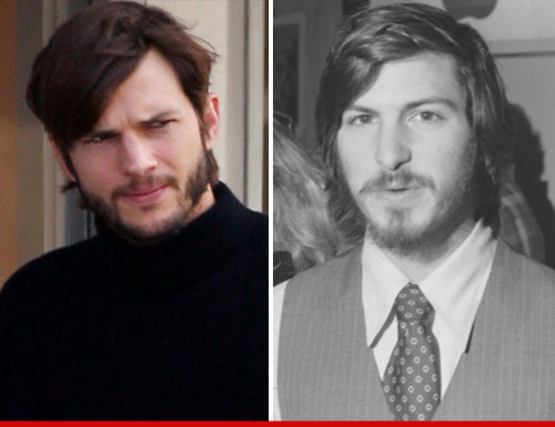 Con unos vaqueros y un jersey de cuello alto negro, Ashton pasea por el set. Y lo cierto es que el peinado y la barba, unidos a ese gesto despreocupado, le hacen parecerse mucho al fundador de Apple.