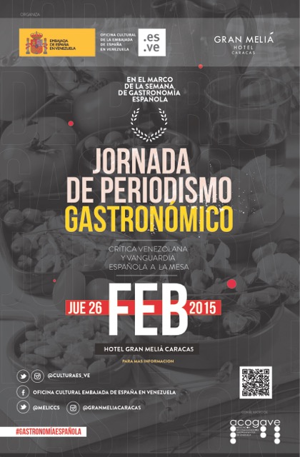 La Embajada de España en Venezuela informa de la celebración de una Jornada de Periodismo Gastronómico el próximo jueves, 26 de febrero, de 9 am a 7 pm, en el marco de la Semana de la Gastronomía Española que organiza conjuntamente con el Hotel Gran Meliá Caracas.