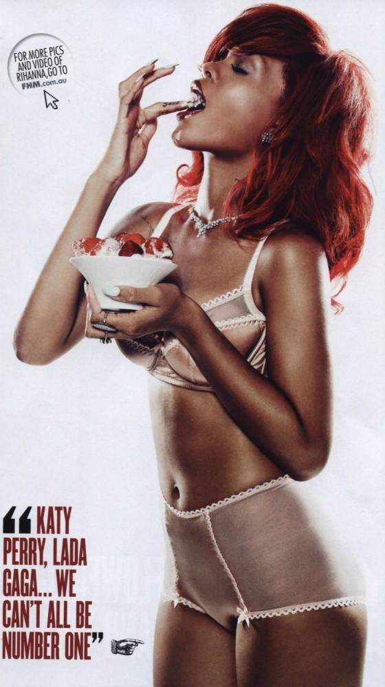 Rihanna adorna la portada de la edición de mayo 2011 de FHM, revista australiana, ofreciendo imagenes que sacan chispas. Dentro de la revista, Rihanna habló sobre la situación competitiva