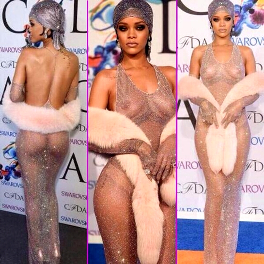 Rihanna lució terriblemente hot con el traslúcido atuendo que dejó ver sus pezones sin ningún reparo. Una vez más, la cantante no ha tenido problemas en mostrarlo todo.