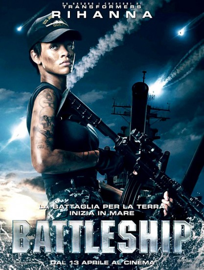Rihanna dejó atrás el glamour, la elegancia y la sofisticación en el nuevo póster oficial de Battleship y con mucha razón: ¿cómo podría estar con vestido y tacones en medio de una batalla naval?