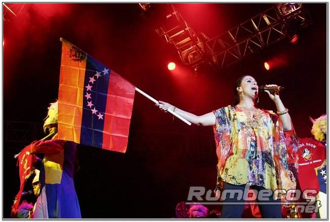 Antes de Rubén Blades, la merenguera Olga Tañón fue la encargada de encender los ánimos de los asistentes a la cita. Una alegre Sin ti —acompañada de la banda marcial Francisco de Miranda— y múltiples banderas venezolanas sobre el escenario marcaron el inicio del espectáculo.