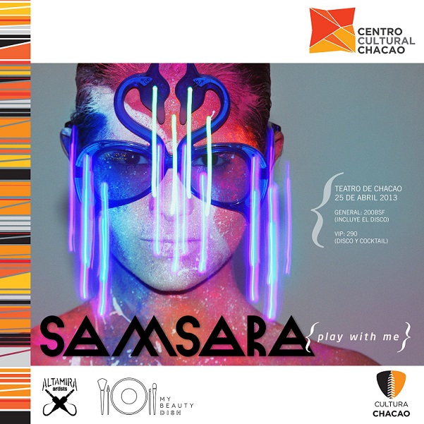 Caracas, 4 de abril del 2013- Actriz, compositora, multinstrumentista y cantante, Samantha expone su alter ego bajo el nombre de SAMSARA para presentar su primer álbum Play With Me disponible en la tienda digital Itunes.