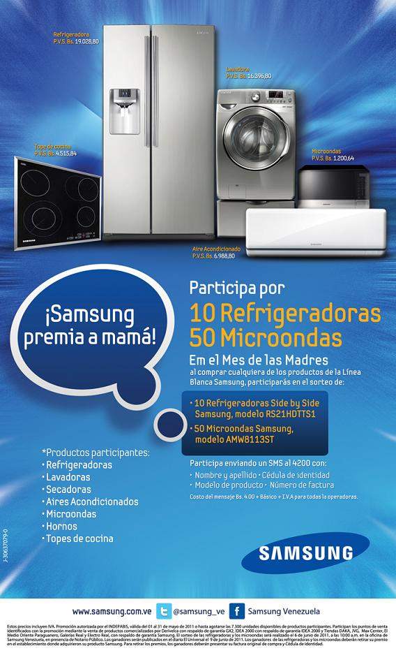 Caracas, mayo 2011 – »Samsung premia a Mamá» es el nombre de la promoción del Día de las Madres que la División de Línea Blanca de Samsung Electronics, líder de mercado y galardonada